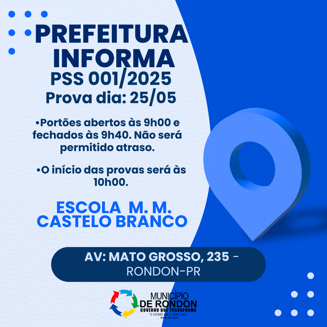 Local: Escola M. M. Castelo Branco Endereço: Av. Mato Grosso, 235 – Rondon-PR