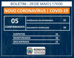 O Município de Rondon, através da Secretaria Municipal de Saúde, torna público que foi registrado nesta quinta-feira, 28 de maio, O QUARTO E O QUINTO CASO POSITIVO PARA COVID-19/CORONAVÍRUS, no município. Informa ainda, a respeito destes casos, o que segue: